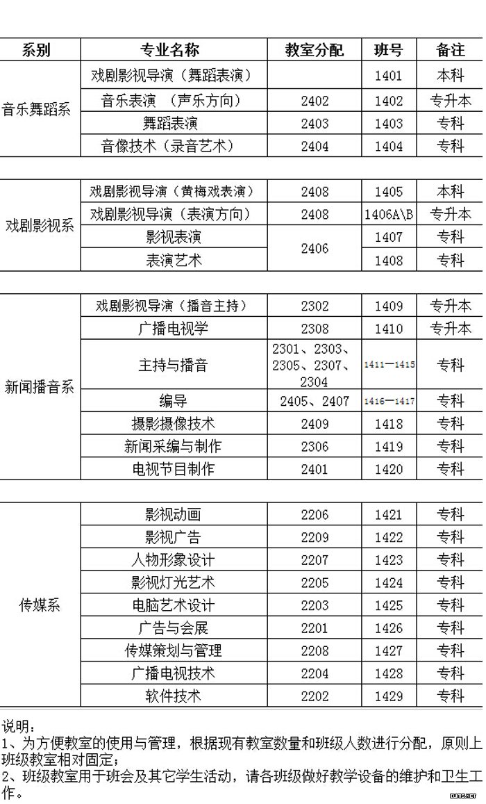 附件:安徽大学艺术与传媒学院2014级新生教室分配表.xls(供下载)
