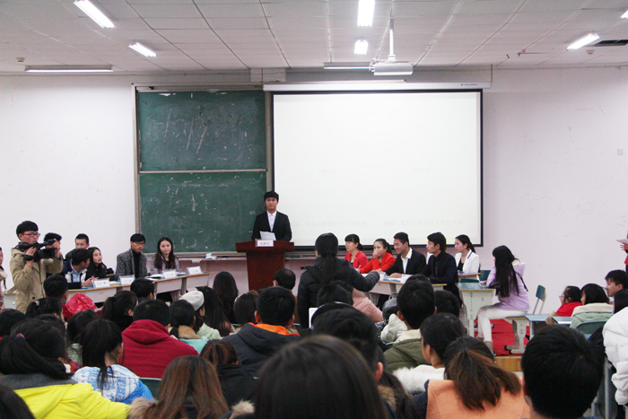 由新闻播音系学生会举办的首届大学生辩论赛共有12支代表队参加,大赛经过初赛、复赛最终决出1411班、1415班、1416班和1419班四支代表队和一支最佳辩手组成的队伍进入决赛。