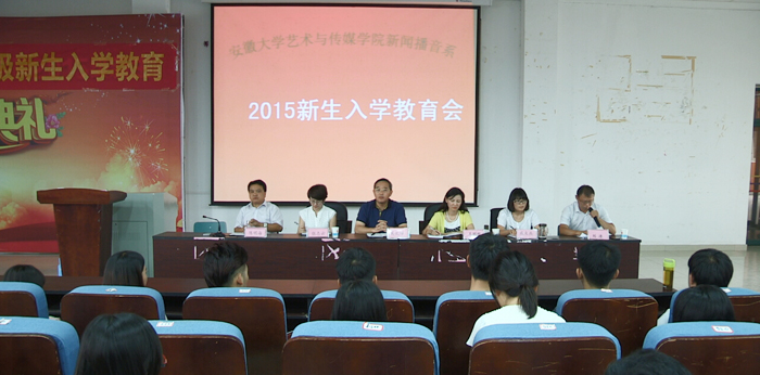 9月14日下午两点半,新闻播音系2015级新生入学教育大会在第一阶梯教室召开。系主任吴孔铎、副主任王琍琍、系党支部副书记张志云等系部负责人以及全体新生参加了此次会议,会议由教学科研办公室主任陈明海主持。