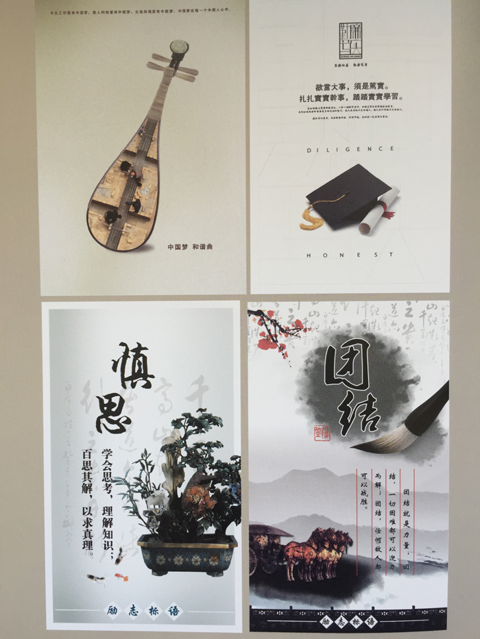 本次共展出设计类作品29件,以招贴、海报设计为主,紧扣[“两学一做”学习教育和庆国庆主题。作品有的与书法艺术结合,有的采用剪纸元素,有的运用敦煌壁画、民族舞形象,表现了绘画、体育、舞蹈等专业特色,传达了设计者对社会主义核心价值观和“两学一做”学习教育的深刻理解。作品风格新颖,构图精巧,图形图像设计富含创意,充分展示了我院师生扎实的专业功底、较高的创作能力和独有的艺术风貌,映透出他们教育事业的专注,对艺术学习的热爱,也说明我院人才培养质量在不断提升。值此安徽省第十次党代会召开和建国67周年之际,学院党委以此方式弘扬了中华传统文化,传承了民族精神,表达了我院师生对党和国家的热爱,对祖国繁荣昌盛,人民幸福安康的美好祝愿。(文/赵晨)