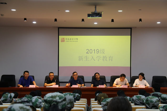 吴孔铎详细介绍学院发展历史、校园建设等情况,鼓励全体新生珍惜四年学习光阴、不负韶华。韩大国介绍了学院的人才培养方案,并从办学定位、学科专业建设、学籍管理等方面对安徽艺术学院的教学安排作了说明。刘长华从三全育人角度分析后勤保障管理服务功能,并立足目前校园建设情况,提醒新生爱护学校的各种设施。陈雪峰围绕户籍管理、军训事宜及安全防范教育等与2019级新生作了现场交流。张志云围绕学生管理职责、奖惩制度、就业指导等几方面发表讲话,指出对此届新生既要严管又要厚爱,希望大家遵守校规校纪,学有所成。最后,陈明号召全体新生思想上追求进步,积极向团组织靠拢,鼓励同学们多交流,积极参加团组织和学生会活动,让大学生活丰富多彩,绽放青春活力。