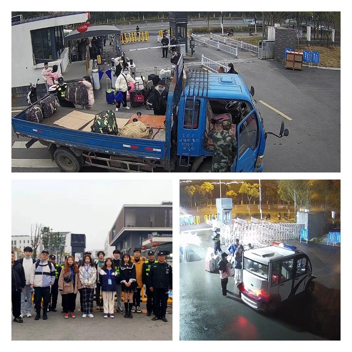 短短两天时间,10位保安参与本次返校行李搬运、往返搬运约2400人次,搬运行李装车约150车,其中四轮巡逻车运送约60车次。保安人员的服务也带动了一批青年志愿者加入到转运行李的服务队伍中,搬运行李。