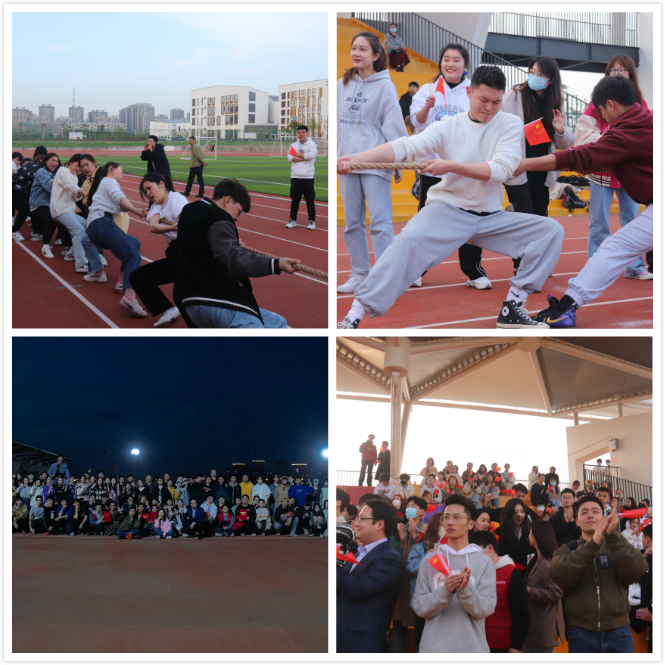由新闻播音系党总支主办、系团总支(学生会)承办的首届拔河比赛共9支代表队参加。哨声一响,一双双有力的手紧紧抓住绳子,双脚死死抵住地面,参赛选手们肌肉紧绷,卯足了劲,寸土必争。学校各位领导老师也在队伍旁助阵加油;未参赛的同学们们个个热情高涨,自发组成啦啦队,给比赛增添了一抹亮色。