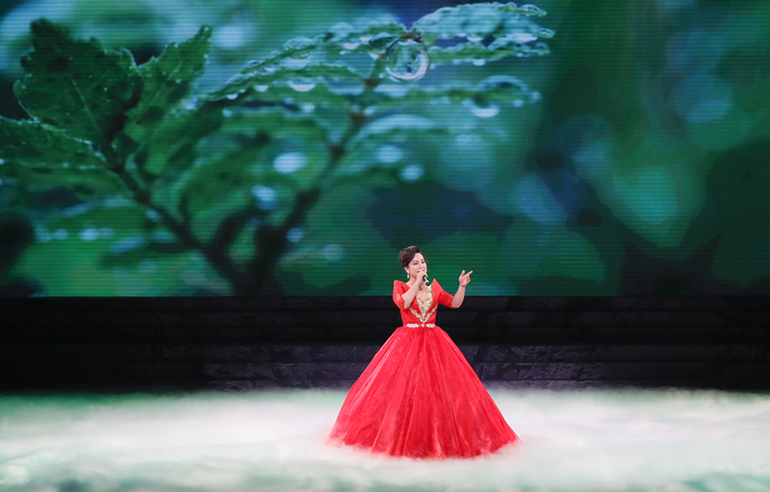 同样是朗诵,寿县小甸集特支第一任书记曹蕴真19岁时写下明志诗,辅以寿县小甸集特支纪念馆视频画面,以单人朗诵的方式慷慨呈现;而根据因公殉职的扶贫干部曾翙翔事迹原创的《星光飞翔》,则以分角色的方式,汇集了曾翙翔、曾妻、老同事、扶贫村村民等四位人物,既避免了第一人称视角的单薄,又得以全方位展示先进事迹,让收尾处的抒情有了扎实的叙事基础,演出现场催人泪下。
