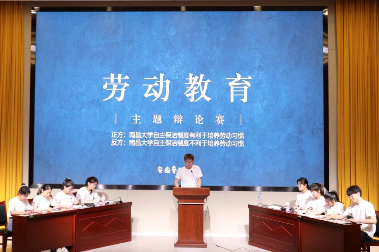 5月13日晚,劳动教育主题辩论赛如约举行,正反双方就“南昌大学自主保洁制度是否利于培养劳动习惯”展开了激烈的辩论。