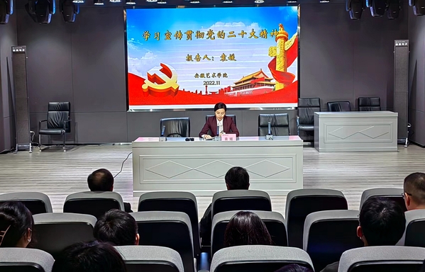 11月16日,党的二十大代表、安徽省黄梅戏剧院一级演员、小梅花团副团长袁媛来校为戏剧学院全体党员宣讲党的二十大精神。党委副书记、校长樊嘉禄出席宣讲活动。