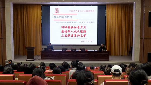 宣扬结合党的二十大报告主要内容和深刻内涵,重点解读习近平总书记七年知青生活与“人民至上”的执政情怀。他讲到,在梁家河度过的七年是习近平总书记一生中最宝贵的财富,是其治国理政理想的基础和历史起点。习近平总书记在七年的实践锻炼中收获颇丰,在严酷的自然环境中锻造了坚毅刚强的意志和顽强拼搏的精神;与老乡建立了深情厚谊,了解国情,感受人间冷暖;通过红色历史和陕北人民质朴、包容、厚道、奉献的人格滋养了崇高理念和不变初心;坚持学习思考实践,积淀了丰厚的知识和一定的治理经验。回顾领袖的知青岁月,展望新时代新征程,习近平总书记始终把国家利益、人民利益、集体利益放在前面。作为当代大学生,应该向领袖学习,成长成才、报效祖国。(撰稿:胡庆苗 摄影:温静 赵硕 初核:赵晨 编辑:朱新水 审定:束舒娅)