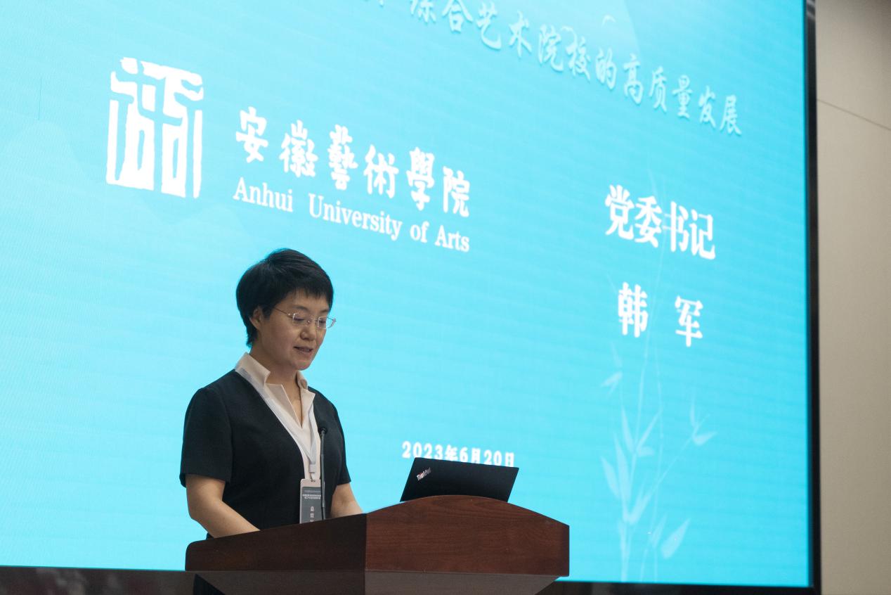 党委书记韩军对参会的各位嘉宾表示欢迎和问候,她指出,挂牌四年来,安徽艺术学院围绕地方性、应用型、特色化发展定位,坚持高起点规划、高标准建设、高质量培养、高水平办学,人才培养富有青春活力,教育教学洋溢青春气息,青春安艺充满青春希望。