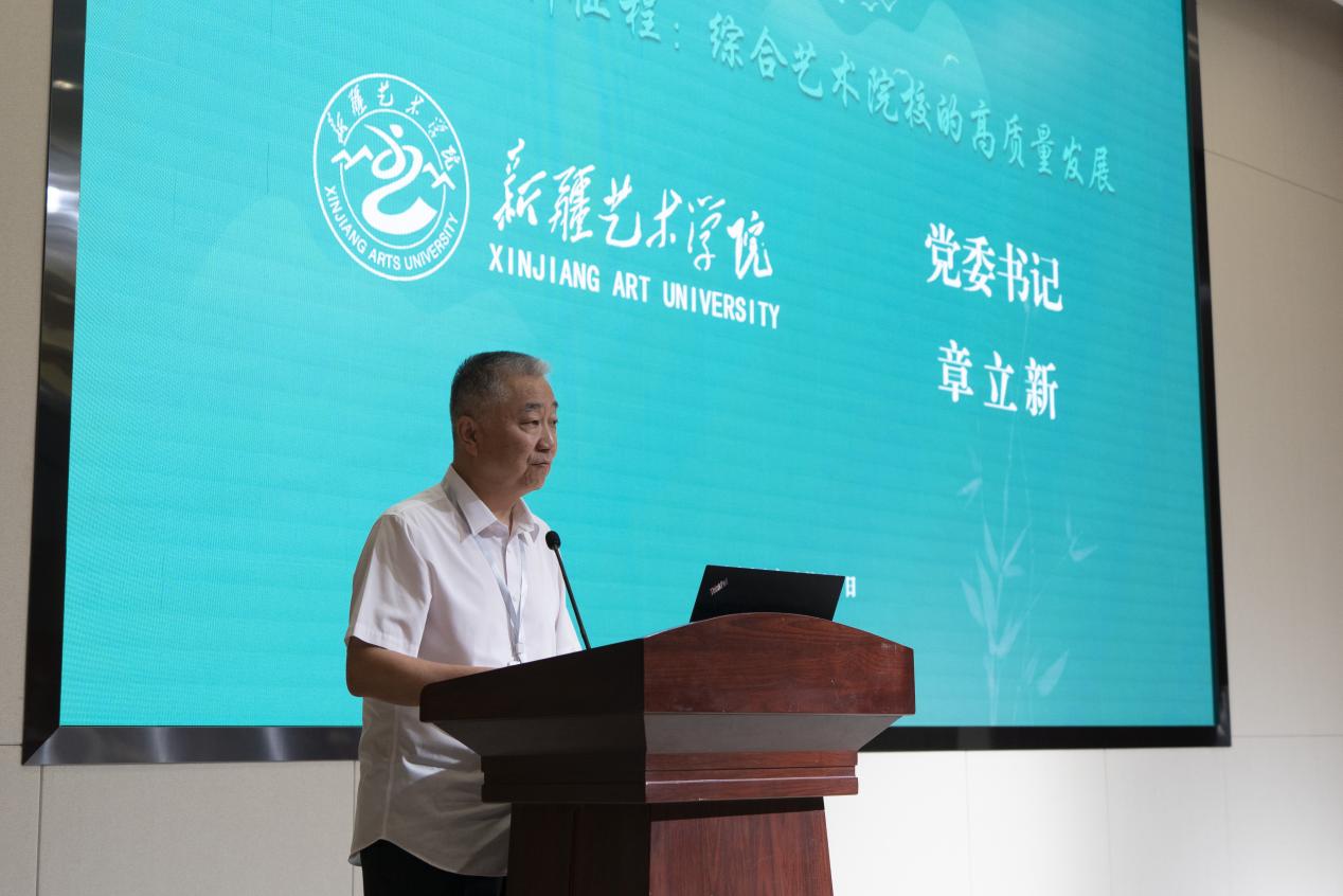 在随后的主旨发言中,南京艺术学院党委书记俞锋,吉林艺术学院党委副书记、院长苏威,山东艺术学院党委委员、副院长荆雷,云南艺术学院党委副书记、院长欧阳俊虎,广西艺术学院党委副书记、院长侯道辉,新疆艺术学院党委书记章立新,内蒙古艺术学院党委副书记、院长赵海忠,安徽艺术学院党委副书记、院长樊嘉禄,围绕“新时代新征程:综合艺术院校的高质量发展”的主题,深入交流各院校在办学特色、人才培养、一流学科、综合改革、艺术创作、成果转化和国际交流等方面的创新举措,为推动综合性高等艺术院校更高水平发展建言献策。