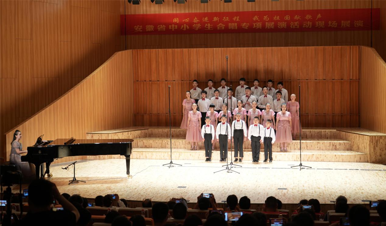 为深入学习贯彻落实党的二十大精神和习近平总书记关于教育和文艺工作的重要论述,全面展现新时代我省中小学生热爱中国共产党、热爱祖国、热爱人民的良好精神风貌,8月20日至22日,由安徽省教育厅主办、安徽艺术学院承办的“同心奋进新征程 我为祖国献歌声”全省中小学生合唱专项展演活动在安徽艺术学院成功举办。