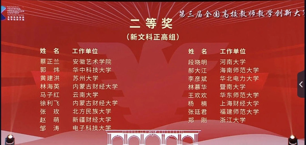 8月22日,我校蔡正兰教授以新文科正高组二等奖第一名的好成绩,实现学校在高校教师教学创新大赛全国赛新突破。