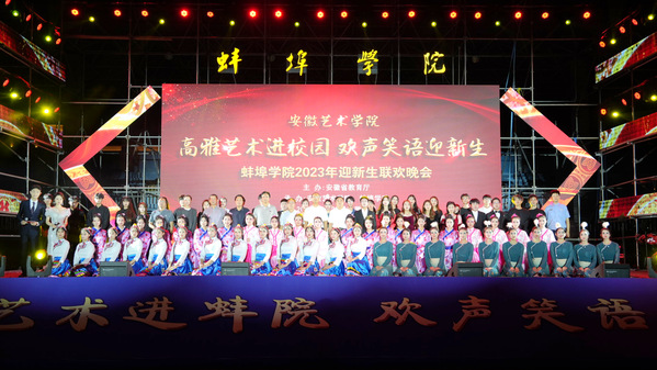 此次专场演出结合蚌埠学院2023级新生入学教育开展,是两校共同打造的一场高雅艺术盛会,现场近5000名师生观看了演出。安徽艺术学院师生带来的舞蹈、民乐合奏、戏曲表演、情景剧、歌曲,蚌埠学院师生表演的原创歌曲、武术表演等节目,赢得全场阵阵喝彩。