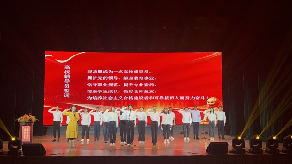 仪式上,《谁是你的辅导员》师生互动环节,将气氛烘托得十分热烈。随后,全体2023级辅导员上台庄重宣誓,“我志愿成为一名高校辅导员,拥护党的领导,献身教育事业……为培养社会主义合格建设者和可靠接班人而努力奋斗!”字字铿锵、句句有力,话语滚烫、誓言郑重。