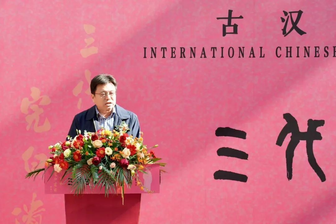 韩军代表主办方对各位领导、专家学者的莅临表示热烈欢迎。汉字是中华文明形成的标志之一,是中华文化的基因。古汉字是汉字的源头和中华优秀传统文化的根脉。这次展览与论坛的定位是五个面向:面向教育、面向学术、面向当下、面向世界、面向未来。展出的书法作品“文心书面、以书焕采”,足以让国内外各界朋友充分欣赏到古汉字书法的艺术魅力。