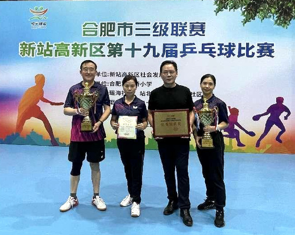 10月21日至22日,新站高新区第十九届乒乓球比赛在合肥市方桥小学教育集团举行。我校代表队荣获女子团体二等奖、男子团体三等奖和女子单打一等奖的好成绩,校工会获优秀组织奖。校党委副书记、校长樊嘉禄参加比赛。