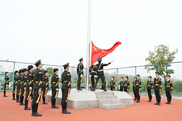 鸣炮9响后,伴随着激昂的运动员进行曲,国旗方阵迈着整齐的步伐率先进入会场。裁判员方阵、运动员方阵紧随其后,步履稳健、英姿飒爽。随后,国歌奏响,国旗升起,在场师生全体行注目礼。