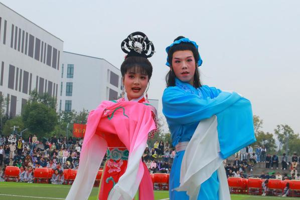 开幕式文艺演出展现了体育与艺术的精妙融合。各二级学院结合专业特色,为大家带来了精彩节目。黄梅戏大连唱《鼓舞飞扬》展现了我校师生青春激昂的风采,啦啦操表演《歌唱祖国》更是将现场的气氛推向高潮。
