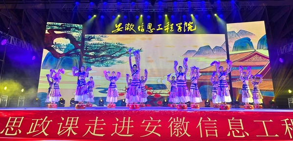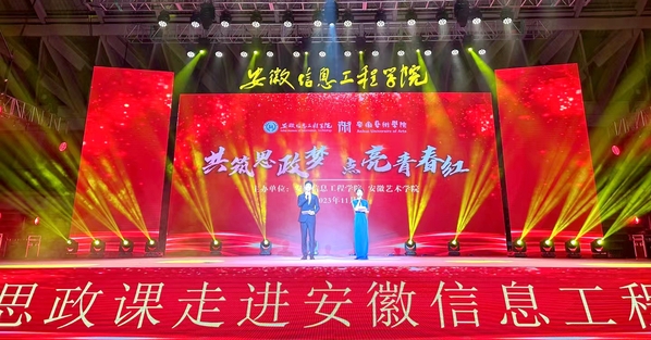 11月4日晚,由安徽艺术学院、安徽信息工程学院联合主办的“共筑思政梦 点亮青春红”艺术思政课在安徽信息工程学院体育馆内开讲。安徽信息工程学院师生代表现场观课,馆内气氛热烈。
