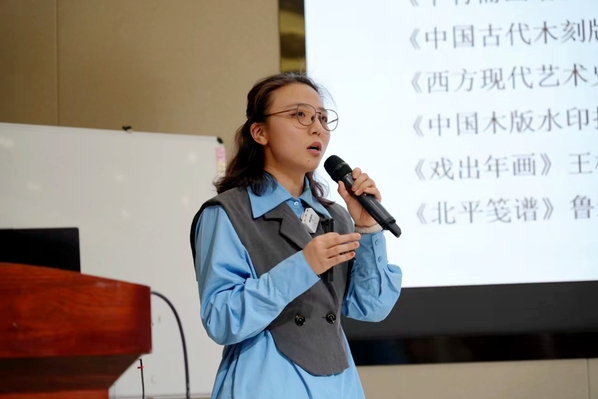 美术学院张婷婷以年画常识的回顾引出水印版画,通过理论解读配合实践操作,实现教师讲授与学生提问有机融合。授课现场述与论相交织,分析和视频演示交替。“淡妆浓抹总相宜”的水印版画以技入道,蕴藏着民族性和时代性的情感表达。