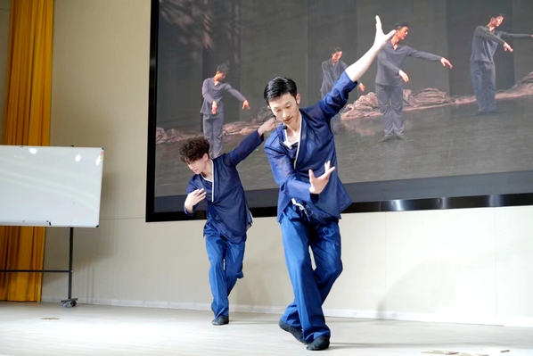 舞蹈学院张钰浩的授课题目是《中国古典舞身韵Ⅱ》。温故环节,《乌苏里船歌》有多深情,新课讲授的《驯龙》就有多刚劲潇洒。那拳掌生风,那眼眸蓄力,那衣襟如蝶飞,身形似线雕,舞出中国舞的阳刚豪迈,舞出时代气度与精神高度。