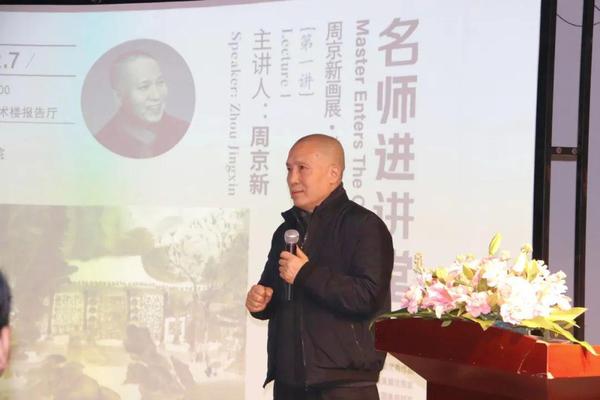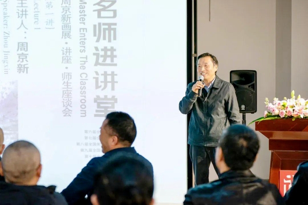 陈林在致辞中表示,在全省上下深入学习宣传贯彻党的二十大精神和习近平文化思想之际,美术学院举办大师进讲堂实践活动,以学术交流、作品展现等为契机,让师生近距离感受名师的风采,针对性较强,育人效果显著。他还就周京新教授的艺术思想进行了诠释。