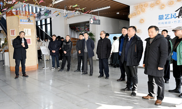 12月25日上午,徽艺民(再)生系列主题“竹构精彩”竹艺作品展在设计学院开幕。党委副书记、校长樊嘉禄,党委委员、副校长陈林,金寨县茶美中心党组书记、主任张勇,金寨县流波䃥镇镇长朱永章,国家级竹编舒席传承人苏成军,安徽艺术学院研究员、国家级工艺美术大师洪建华及设计学院师生观看展览。