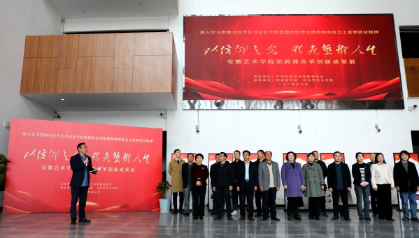 为深入学习贯彻习近平总书记在学校思想政治理论课教师座谈会上重要讲话精神,3月15日下午,学校举办学习贯彻“习近平总书记3·18重要讲话五周年”系列活动。活动分为“以信仰之光 照亮艺术人生”——安徽艺术学院思想政治理论课改革创新成果展和“习近平总书记在学校思想政治理论课教师座谈会上重要讲话发表五周年”学习座谈会。校党委书记韩军、相关职能部门和二级学院党总支负责人、全体思政课教师、辅导员代表,新站区高校思想政治理论课教学联盟成员单位马克思主义学院负责人参加活动。