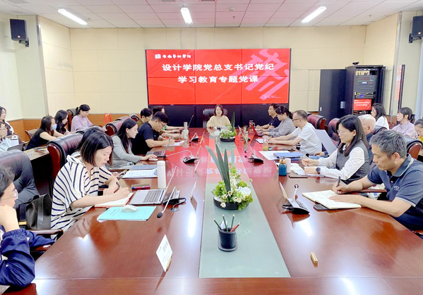 5月29日下午,设计学院党总支在设计楼403会议室开展党纪学习教育专题党课,设计学院党总支书记俞璋凌以“履职尽责 真抓实干 善作善为——为实现安艺设计高质量跨越式发展提供坚强纪律保障”为主题,向全体党员教职工讲授专题党课。