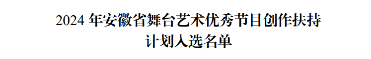 2024年安徽省舞台艺术优秀节目创作扶持计划面向全省遴选一批具有精品潜质的小型舞台艺术作品或选题进行重点扶持。通过各地市文化单位、各院团、高校选报、专家评选等环节,最终共有20项小型舞台艺术作品成功入选。(撰稿:潘捷 初核:冯传胜 编辑:朱新水 审定:尹广富)