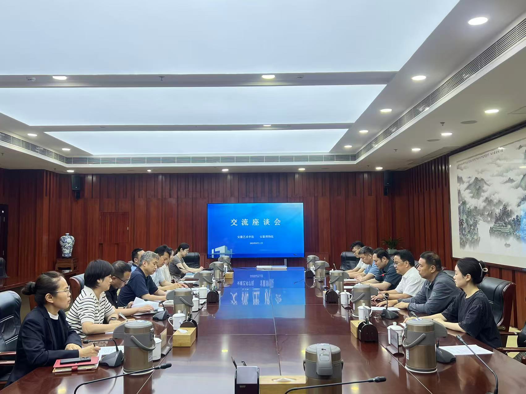 陈明海结合学院发展实际从新安画派传承与创新、邓石如书法研究、微专业课程开发、实践教学基地建设等方面提出了多项合作构想。参会人员就学术研究、项目申报等问题发表了自己的观点,双方达成高度共识。