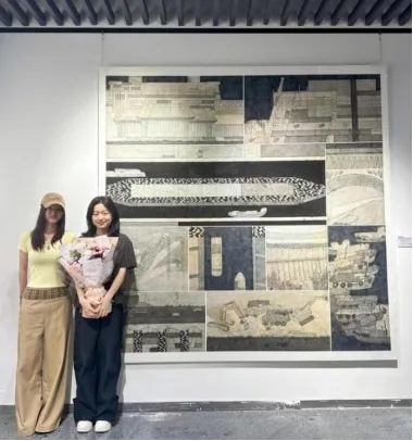 一周后,肖梦楠重返画室,投入最后的创作。罗老师把她的专业、敬业、爱心融入到对肖梦楠的创作指导中。她们反复揉纸、设色、打磨细节,常常一待就是一整天。最终,作品如期完成——画面上,工程的壮阔与温情交织,每一笔都凝聚着肖梦楠对历史的敬意与对亲人的思念。