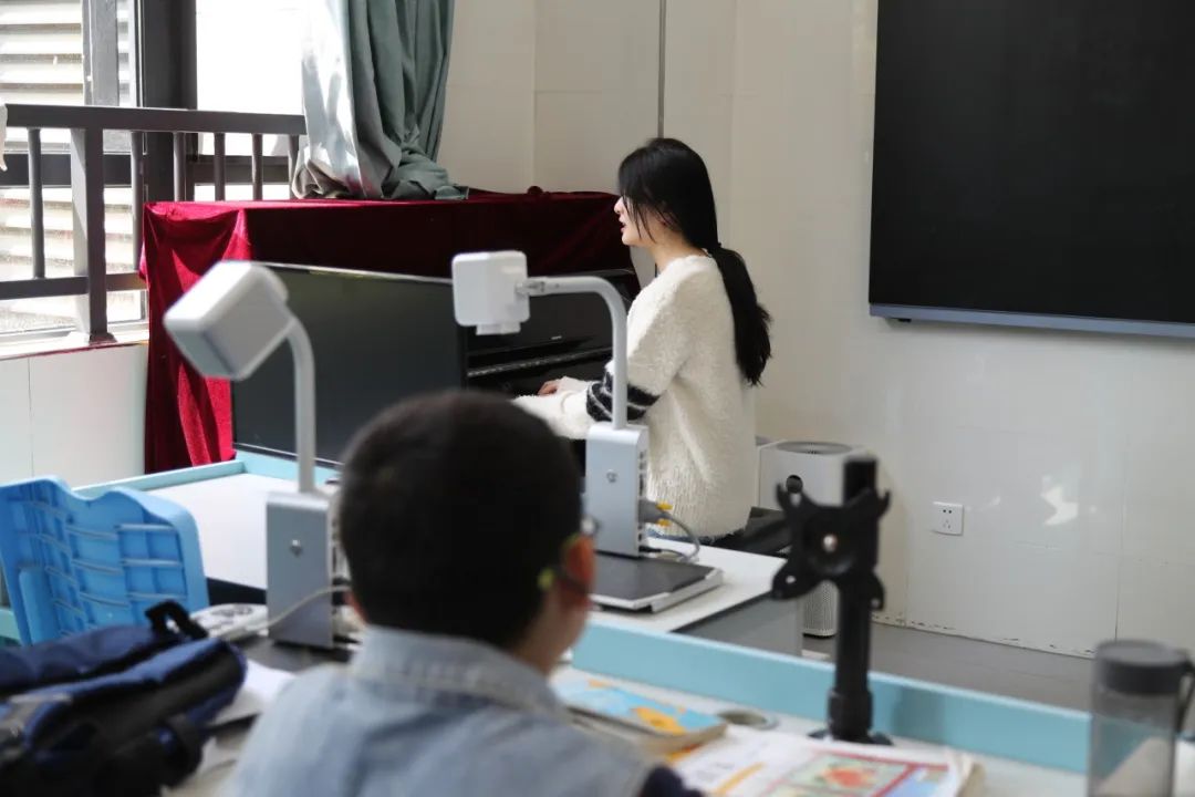 (郁晓楠在合肥市特殊教育中心启明部122教室授课)
