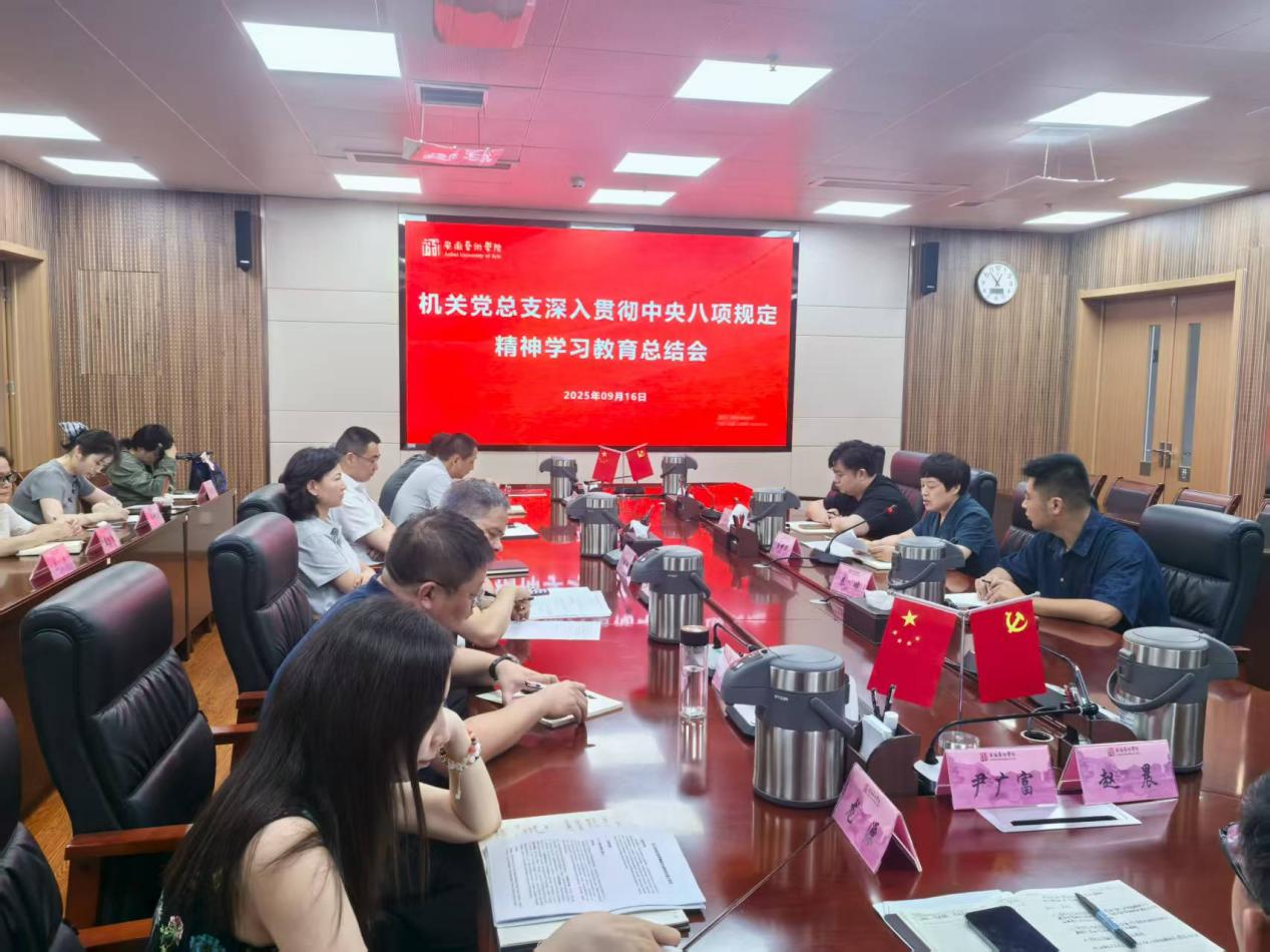 9月16日,机关党总支召开深入贯彻中央八项规定精神学习教育总结会,传达学习习近平总书记关于深入贯彻中央八项规定精神学习教育的重要指示和中央党的建设工作领导小组第十七次会议精神,传达学习李希同志在“纪检监察工作规范化法治化正规化建设年”行动工作推进会上的讲话精神以及省委十一届十次全会精神。全面总结机关党总支学习教育工作,梳理经验,查找不足,进一步推动作风建设常态化长效化。机关党总支书记吕中华主持会议并讲话。