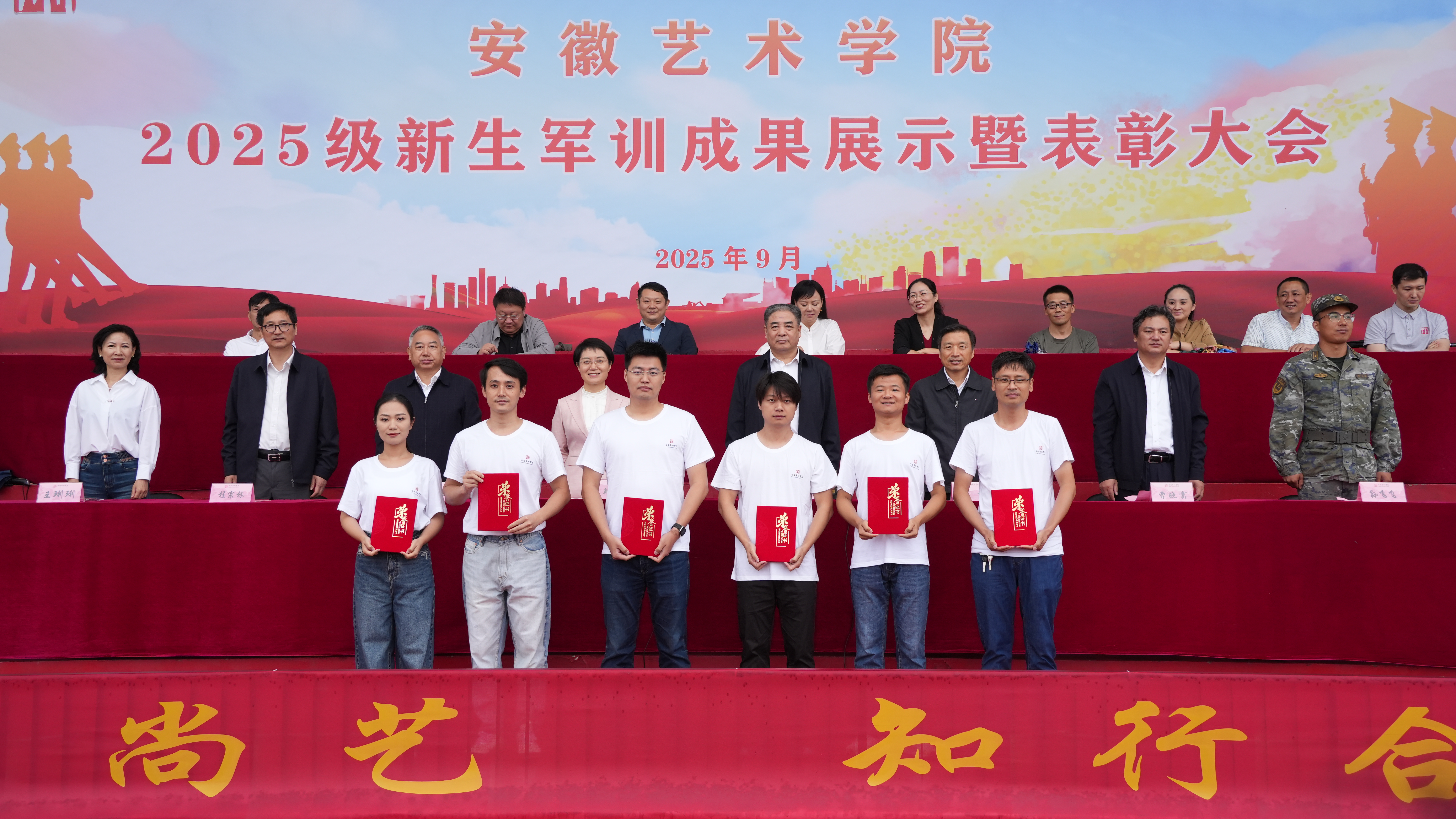 9月29日上午,我校2025级新生军训成果展示暨表彰大会在校运动场举行。校党委书记韩军,党委副书记、校长柳友荣,党委副书记陈文兵,党委委员、副校长陈林,党委委员、纪委书记、监察专员程宗林,党委委员、副校长、教师工作部(人事处)部长(处长)曹晓富,党委委员、组织部部长王琍琍,承训部队首长张飞飞等出席大会。大会由韩军主持。
