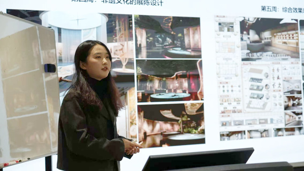 设计学院孙染以《策展与展陈设计》参赛,聚焦策划核心能力,结合《千里江山图》案例讲授设计原则,融入AIGC实操指导非遗展陈设计。她强调以观众为中心、设计师主导,通过互评深化认知,培养学生人文与技术融合能力。