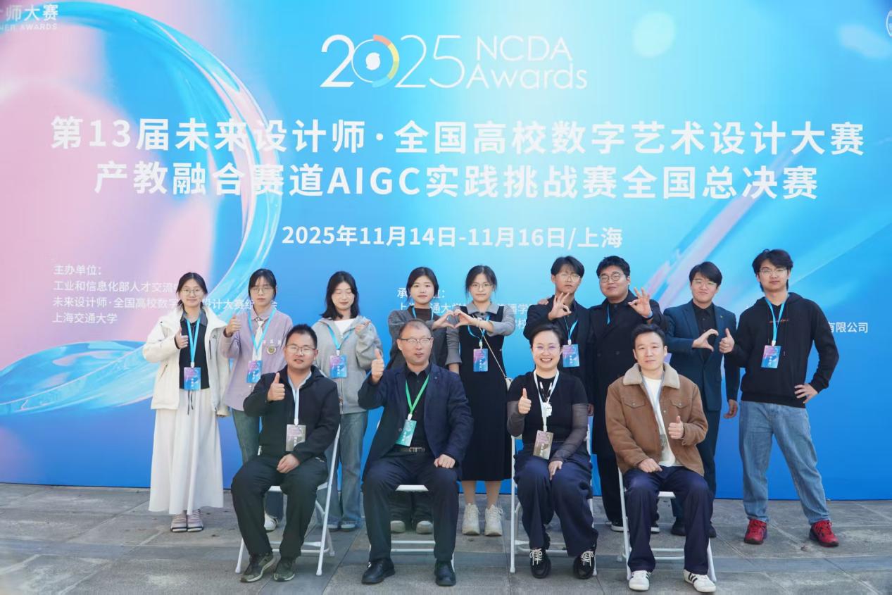 在这场比赛中,指导教师的身影无处不在。尤泽千老师默默承担起后勤保障工作,从行程安排到设备调试,事无巨细;范楼苗老师全程陪在学生身边,在上海备赛期间,每天陪着学生熬夜改稿、调试模型;钱振老师分享AIGC分镜设计思路,细致的指导为同学们的比赛带来了许多启发和突破;刘涛副院长从赛事启动到站上领奖台,亲力亲为,始终以微笑和温暖的话语鼓励着每一位学子……