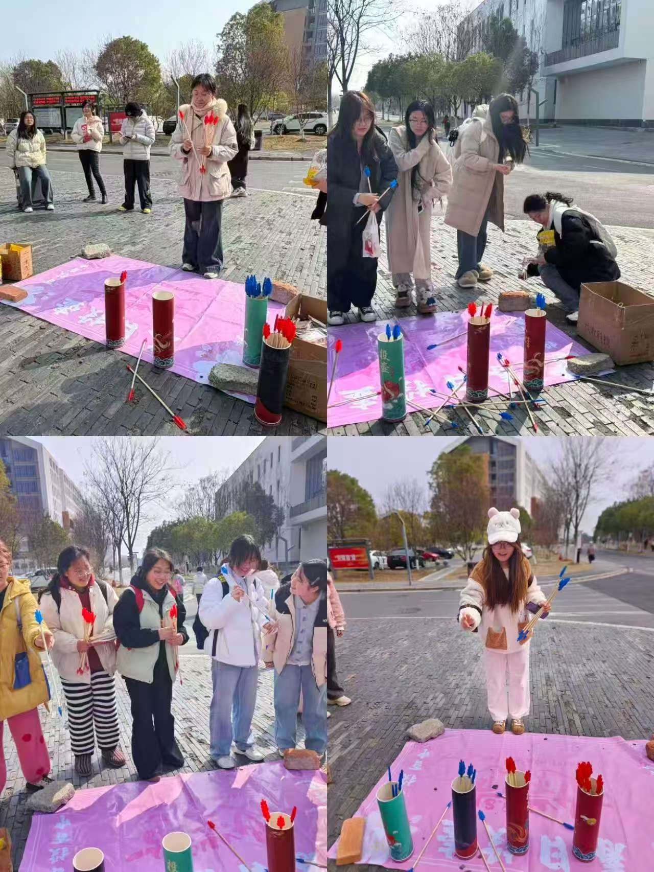 入学适应趣味活动包括“投壶逐春光”“幸运滚滚乐”“心理健康知识宣传”等项目。活动将心理调适与互动体验深度融合,为返校同学提供了放松解压、沟通交流的平台。同学们踊跃参与,在游戏体验中悄然释放入学焦虑,增强关系联接与归属感。在“心理健康知识宣传”环节,志愿者为同学们发放了心理中心宣传手册和《爱自己的一百种方式》宣传册,详细为同学们介绍了学校的心理健康支持资源。为期两天半的互动活动吸引了大量学生参与,助力学生快速收心归位。
