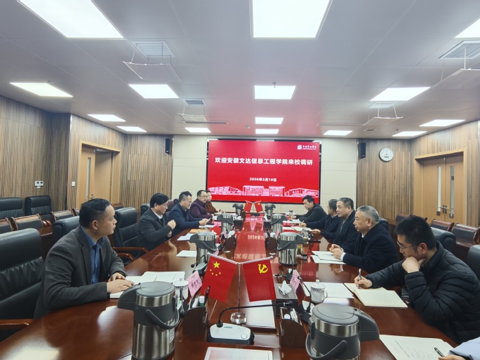 3月10日下午,安徽文达信息工程学院常务副校长张穗萌,党委副书记、副校长、纪委书记唐立军一行来校调研交流。学校党委副书记、校长柳友荣,党委副书记陈文兵出席会议。