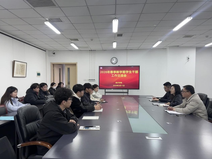 3月11日下午,美术学院在307会议室召开2026年春季新学期学生干部工作交流会。美术学院党总支副书记陈伟伟出席会议。美术学院学管办副主任刘民主持会议。