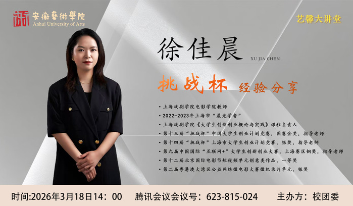 3月18日下午,校团委举办“挑战杯”备赛专题指导讲座,邀请上海戏剧学院教师、第十三届“挑战杯”中国大学生创业计划竞赛国赛金奖指导老师徐佳晨担任主讲嘉宾,讲解艺术类项目备赛难点,明晰参赛思路。
