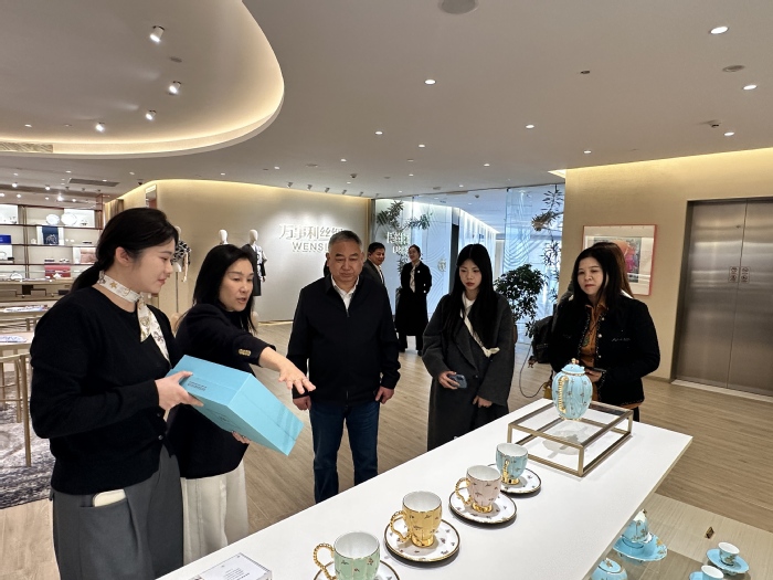 在万事利集团,陈文兵一行实地考察丝绸文化展示馆,详细了解企业在丝绸产业传承与创新发展中的成果。座谈会上,万事利集团副总经理沈霞介绍企业发展历程、核心业务布局及未来战略规划,万事利集团总经理助理沈小华介绍企业与高校的合作情况,并表达进一步加强合作的意愿。陈文兵介绍学校学科建设基础、人才培养体系和师资力量优势,指出学校将坚持以社会需求为导向,主动对接行业企业发展需要,不断增强人才培养的针对性和适配性,持续提升毕业生就业竞争力。希望双方以此次交流为契机,在实习就业基地建设、校企协同育人、项目合作等方面进一步深化合作。