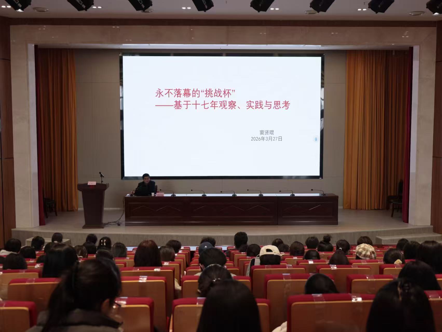 3月27日,阜阳师范大学党委常委、副校长窦贤琨受邀来校,开展主题为“永不落幕的‘挑战杯’——基于十七年观察、实践与思考”的“挑战杯”备赛专题指导讲座。