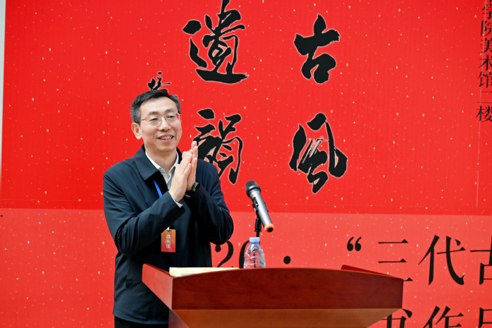 校党委副书记、校长柳友荣致辞表示,这是学校书法学科建设的一件大事,更是安徽书法界传承经典、共促发展的一场盛会。本次展览以“完白遗韵”为题,既是对邓石如逝世221周年的隆重纪念,也是对安徽书法文脉的传承与弘扬。学校将加强与安徽省书协及兄弟院校的合作,借鉴先进办学经验,深化产教融合,推动书法文化与现代科技深度融合,培养更多“高素质、强能力、精才艺、善应用”的现代化综合应用型书法人才。