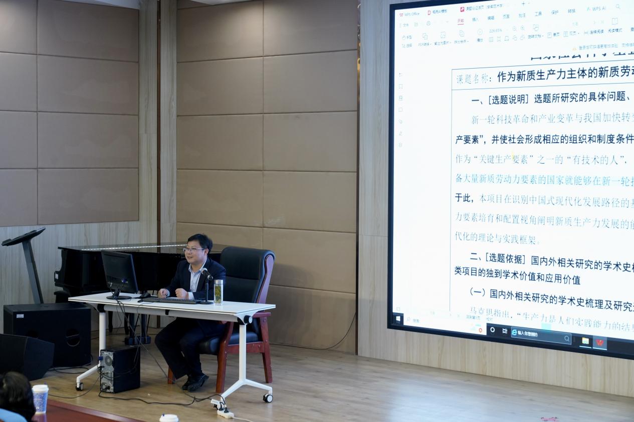 本次讲座邀请安徽大学人文社会科学处处长、博士生导师李静教授主讲。李静结合人文社科与艺术类学科特点,围绕课题选题策略、申请书撰写技巧、有组织科研推进路径等内容展开详细讲解。他指出艺术类院校教师应立足自身学科特色,精准把握理论研究与创作实践的结合点,主动从中华优秀传统文化传承、文艺精品创作等重大方向凝练选题,积极融入跨学科团队协作,在服务文化强国建设、推动学科高质量发展中彰显巾帼担当。讲座内容兼具理论性与实操性,案例鲜活、重点突出,为在场教师破解课题申报难题、提升科研能力提供清晰指引。