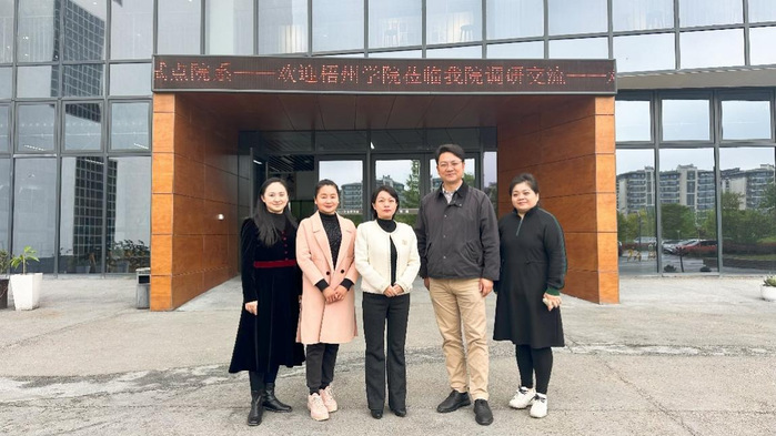 4月21日,梧州学院教师教育学院副院长陈洁一行来学校交流调研。发展规划与科研处处长郭强、音乐学院副书记丁梦溪、音乐学院副院长张祖顺、舞蹈学院副院长李玉煜及相关部门同志参加座谈。