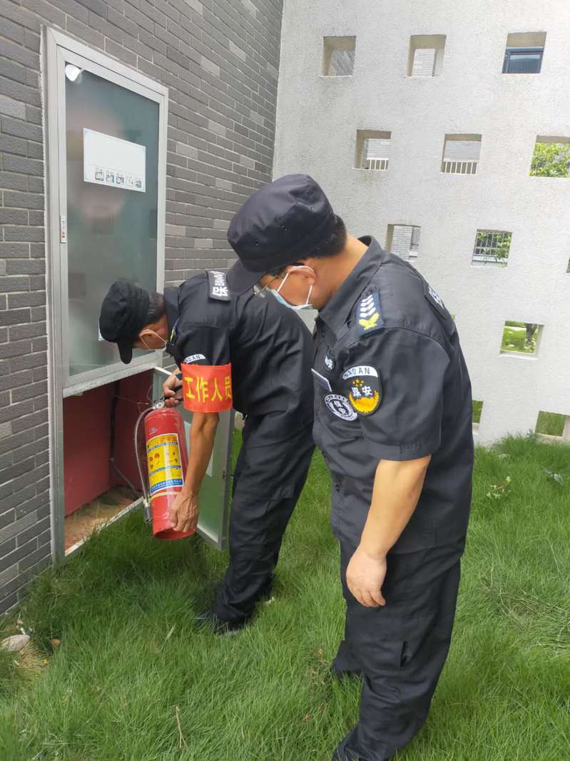 此次检查的内容包括:各门岗防疫工作的落实情况,消防安全管理情况,校内设备设施安全、用电安全情况,工地施工安全情况,治安防范、交通安全管理情况。巡逻的保安队伍延巡逻路线定点巡查了校园的安全情况,安保负责人协同队长通过监控室监控检查了各楼的安全情况,排查校园内的安全隐患。