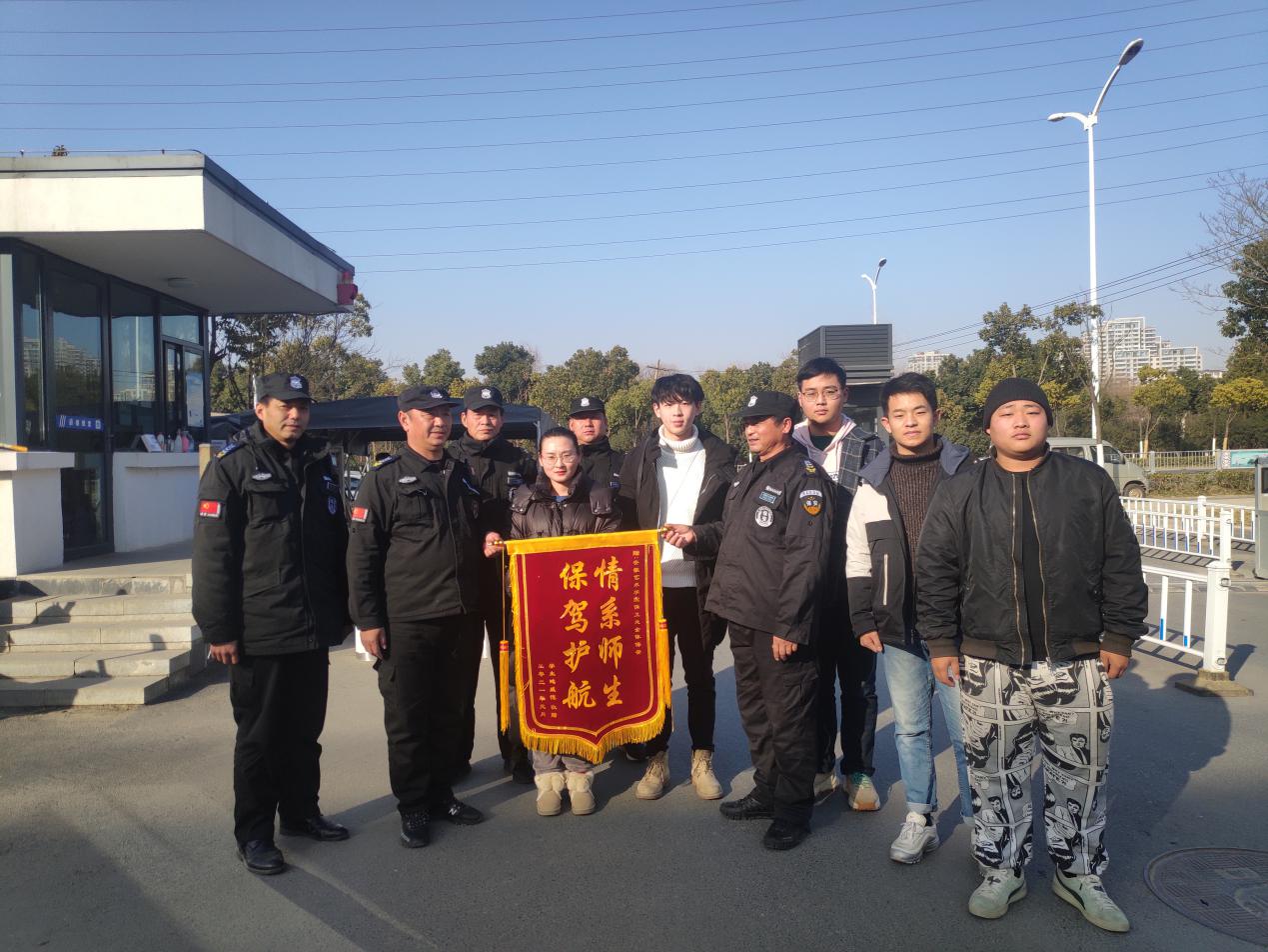 1月13日下午,在安徽艺术学院北门,安徽艺术学院学生会池威恺等四名学生为安徽艺术学院保卫处全体保安队员送上印有“情系师生,保驾护航”的锦旗,表示对保安队员的工作感谢。