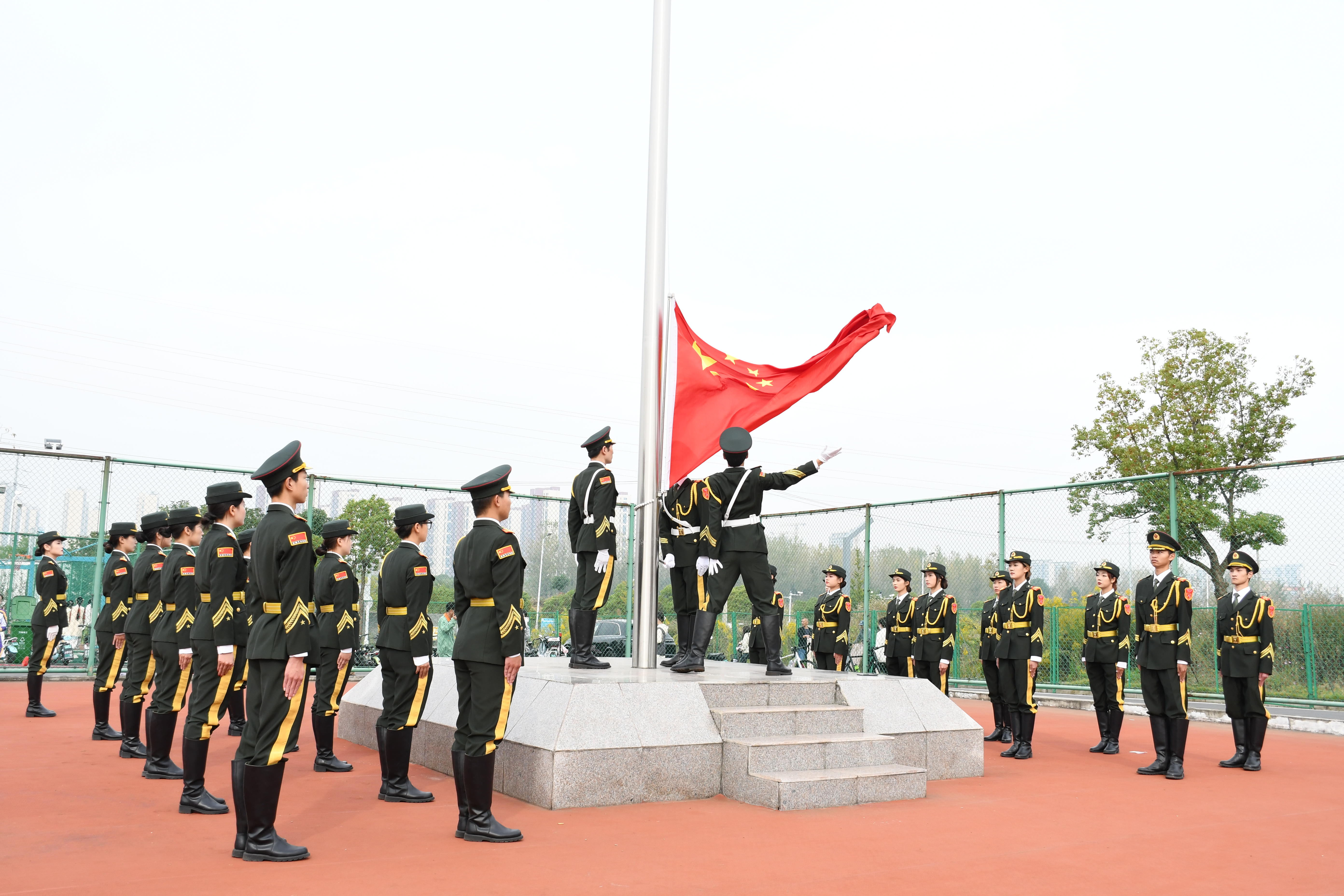 安徽艺术学院国旗护卫队是一支由热爱祖国、热爱国旗、积极进取、奋发向上的在校学生组成的学生国旗护卫队以我校校训“德艺双馨 知行合一”为宗旨,以护卫中华人民共和国国旗为己任,承担我校日常升旗与重要活动升旗仪式。他们满腔热忱、敢担重任的形象充分展现了我校学生满目山河、敢想敢为的风采。
