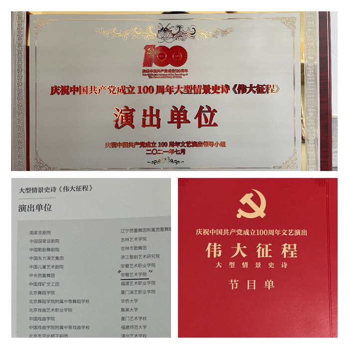 经过历时3个月的排练、演出,同学们用投入的演绎、精湛的舞蹈奉上了精彩的节目。舞蹈《开国大典》中,学生们在转台表现天安门广场人民群众欢庆新中国成立;情景舞蹈《党旗在我心中》,学生们用舞姿呈现抗震救灾和灾后重建的感人情景;尾声歌曲《领航》中,学生们组成金色的“人民”字样,呼应主题……演出结束,20级戏剧表演d班的李清源激动地感慨:“我们在这,不止在这。参与到百年党史伟大征程的演绎,既是认可也是鞭策,前方的新征程我们青年学子责无旁贷。”(撰稿:冯传胜 摄影:李胜 时特 初核:束舒娅 审定:吴孔铎)