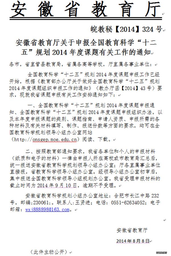 转发安徽省教育厅关于申报全国教育科学“十二五”规划2014年度课题有关工作的通知
